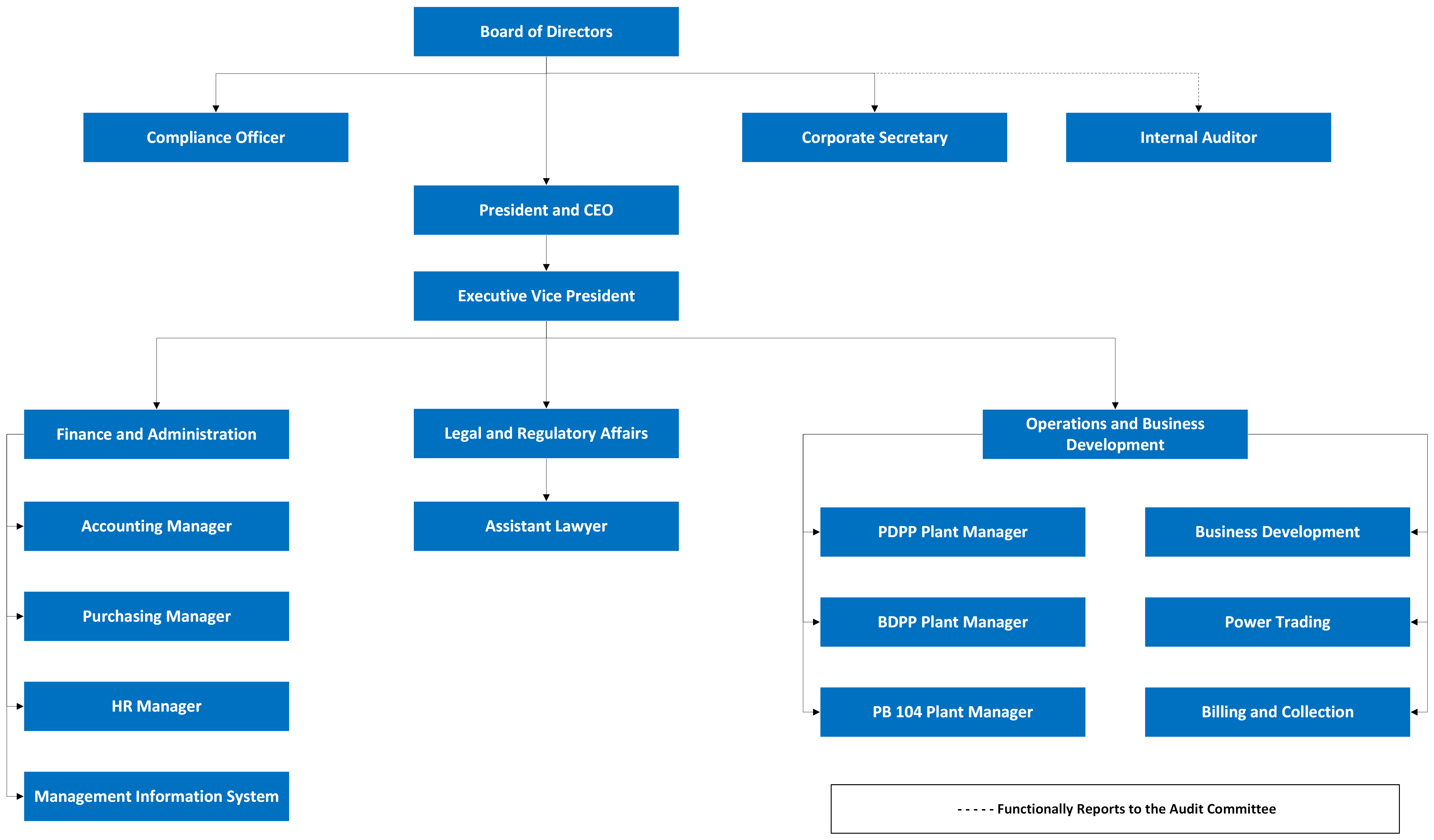 Explore the organizational structure of SPC Power Corporation through our detailed organizational chart. Gain insight into the hierarchy, roles, and relationships within our company, as we strive for operational excellence and effective leadership in the energy sector.